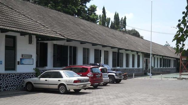 Mobil parkir di depan gedung SMP 5 yang antik (Bagus/detikTravel)